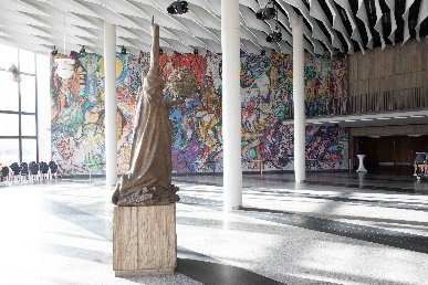 Weil in den vergangenen 70 Jahren viele Kunstwerke auf Basis dieser gesetzlichen Vorgabe an und in Bauwerken entstanden sind, hat das Bundesministerium des Innern, für Bau und Heimat eine Wanderausstellung konzipiert, die aktuell und bis zum 2. Mai in den Kunstsammlungen Chemnitz im Museum am Theaterplatz gastiert. Ziel der Ausstellung sei es, die Vielfalt von Kunst am Bau in Form und Inhalt zu präsentieren, heißt es aus den Kunstsammlungen. Einen Schwerpunkt legt die Wanderschau bei ihrer hiesigen Station auf Kunstwerke an und in öffentlichen Bauten in Chemnitz, beispielsweise auf den Eingangsbereich der Stadthalle oder das Marx-Monument. Doch auch Beispiele aus anderen Städten - bis hin zu Botschaftsgebäuden im Ausland - werden präsentiert.