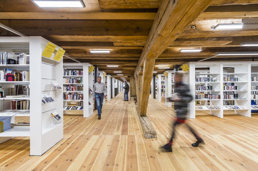 In Freiberg wurde lang um eine Stadtbücherei gerungen: Eine Reihe von Vereinsbibliotheken sorgte zunächst für geistige Nahrung für die Mitglieder, erst 1876 entstand eine erste Volksbibliothek mit städtischer Beteiligung. Die erlebte vor und nach der Umbenennung in Stadtbibliothek 1920 viele Umzüge, residierte in der Knabenschule, in einem Kaufhaus oder auch mal im Ratskeller. Erst 2015 fanden die städtischen Buchbestände im frisch sanierten Kornhaus ihr aktuelles und angemessenes Zuhause. Der spätgotische Bau, Teil des Weltkulturerbes Montanregion Erzgebirge, hatte einst zur mittelalterlichen Befestigungsanlage gehört – das erkennt man bis heute an den beeindruckenden Holzkonstruktionen im Inneren des Gebäudes.