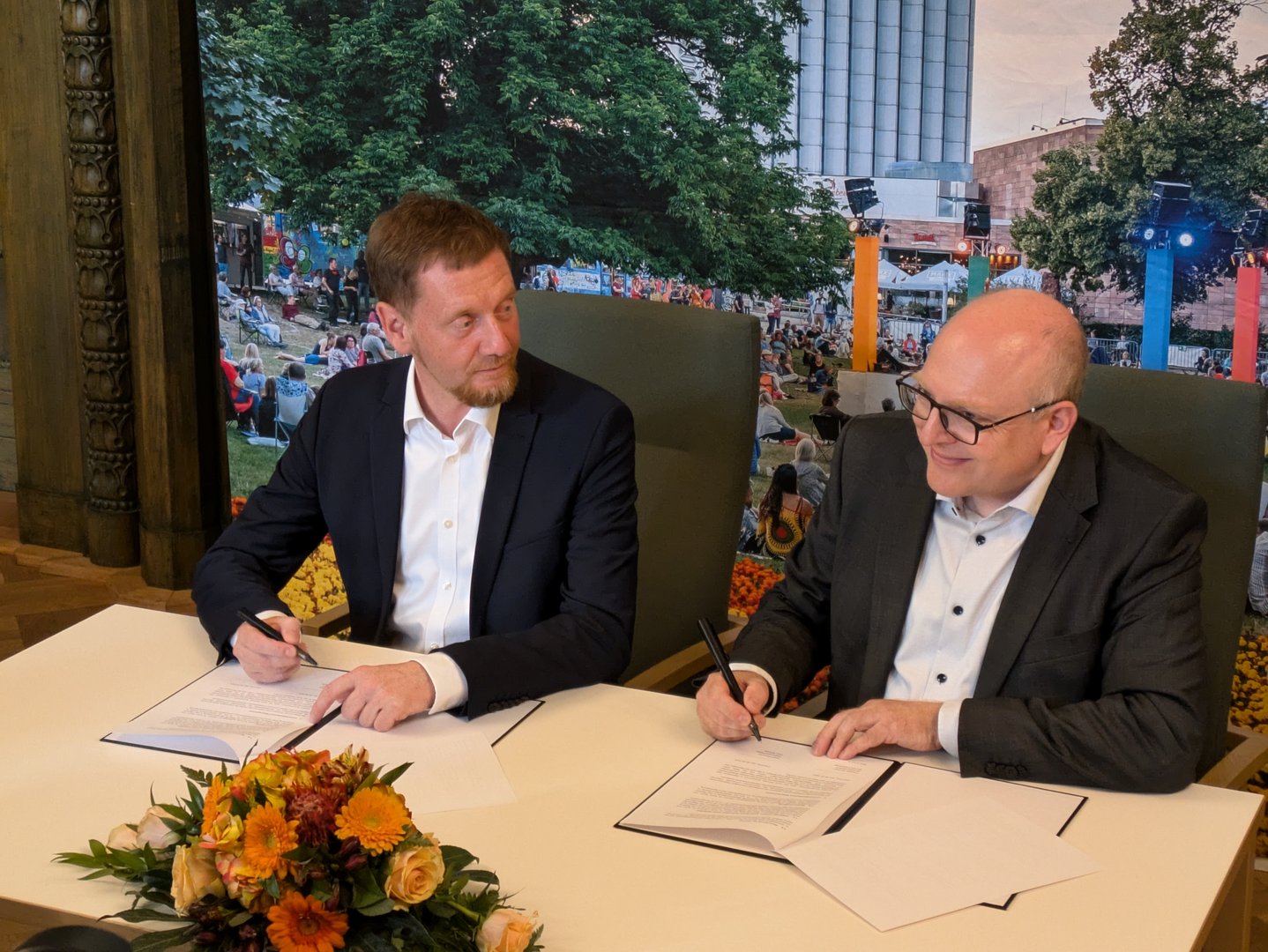 Oberbürgermeister Sven Schulze und Ministerpräsident Michael Kretschmer für den Freistaat Sachsen haben am Mittwoch, 15. August eine gemeinsame Absichtserklärung zur Ermöglichung des Baus eines Kultur- und Sportcampus in der Chemnitzer Innenstadt unterzeichnet. Dafür solle das Areal hinter der sogenannten "Parteifalte" an der Brückenstraße genutzt werden. Die Niners Chemnitz, Basketball-Bundesligist, sind interessiert am Bau und Betrieb einer solchen Arena (Chemnitz Inside berichtete).