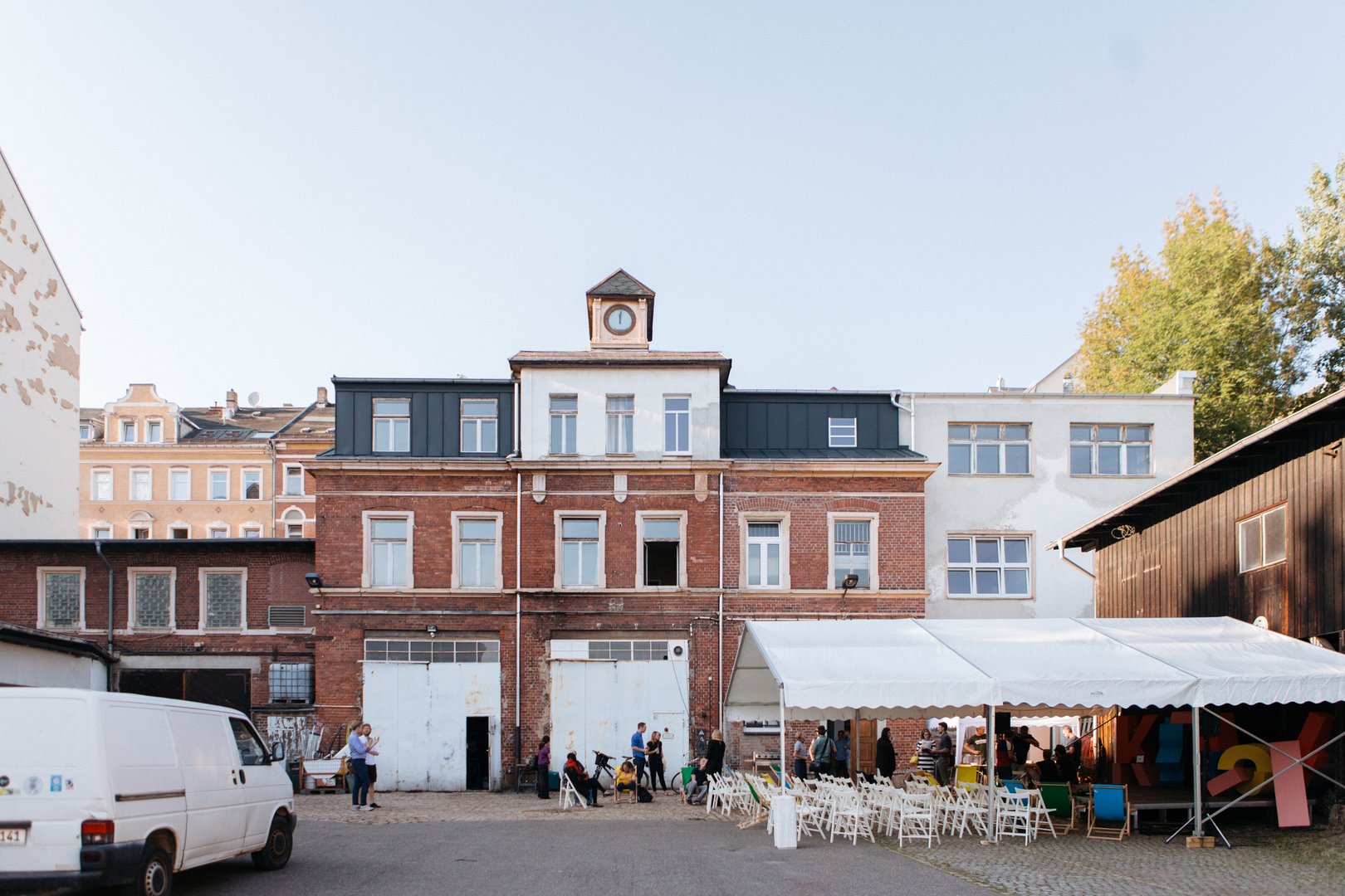 Inzwischen sind beinahe drei Jahre vergangen. Der Verwaltungsbau, das sogenannte Haus D, wurde von der Stadt renoviert, die KRACH-Projekte sind ein- und die ersten auch schon wieder ausgezogen. Unter der Trägerschaft des Branchenverbands Kreatives Chemnitz und unter tätiger Mithilfe eines Stadtteilmanagers für Wirtschaft, Kreativwirtschaft und Netzwerkarbeit lebt das Haus D – und die Planungen, das gesamte Areal fortzuentwickeln, wurden vorangetrieben. Nicht immer erfolgte dies ohne Nebengeräusche: Bestandsmieter fühlten sich übergangen, Stadträte aus rechtspopulistischen Parteien fürchteten ein chaotisches Sodom und Gomorrha und noch dazu ein Steuergeldgrab, wenn man hier zu viel intervenierte.