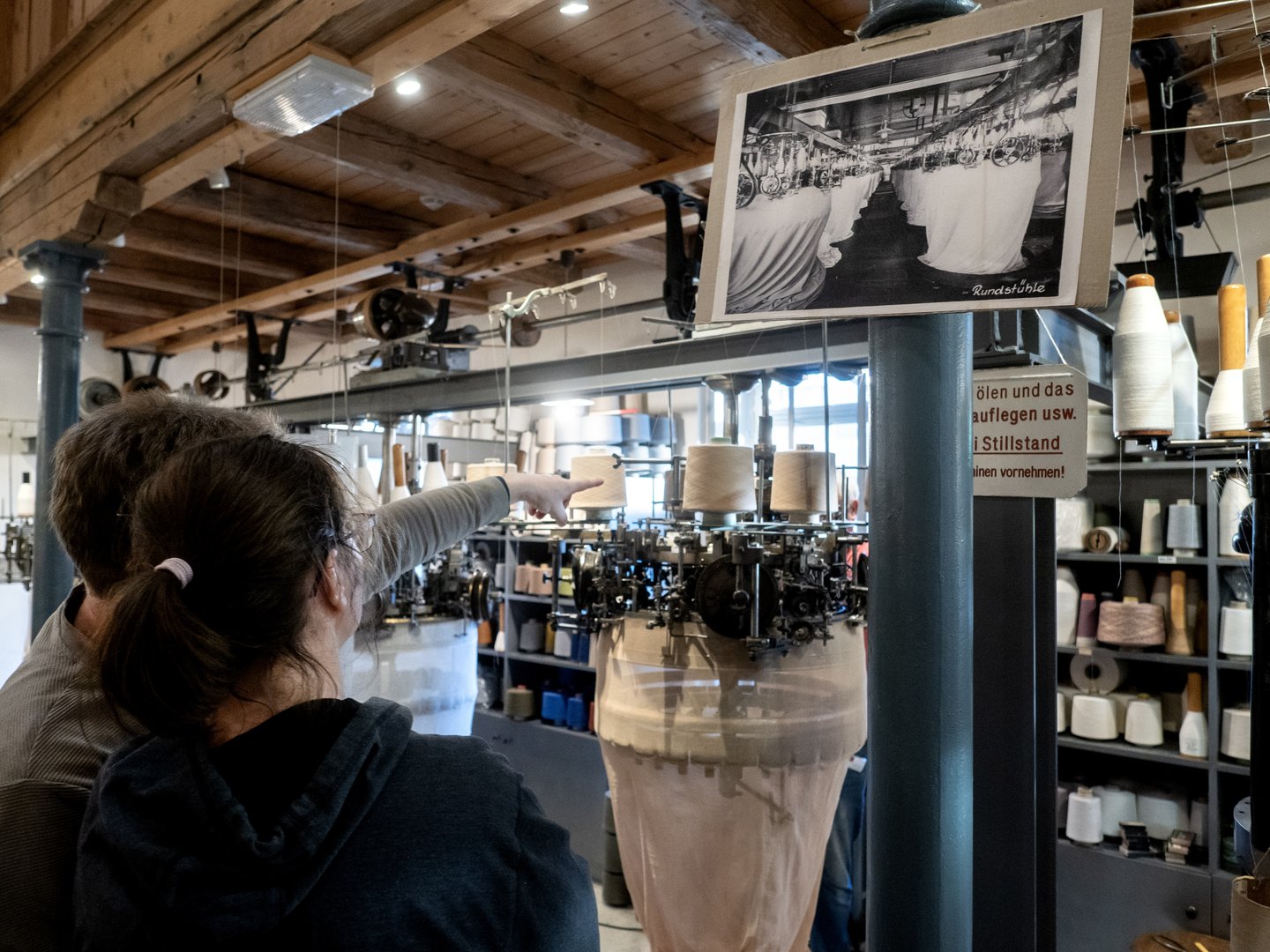 Entsprechend textilgeschichtlich ist das Museum heute angelegt mit zahlreichen historischen Maschinen und Informationen zu den Machern dahinter. Doch es weist auch in die Gegenwart. Im Eingangsbereich findet sich etwa derzeit eine kleine Präsentation von in Limbach hergestellter Arbeitskleidung. Und in den Museumsräumen gibt es einen Ausstellungsbereich mit aktuellen Berufsbildern in der Textilindustrie. „Das soll vor allem den Nachwuchs ansprechen“, erklärt Barbara Wiegand-Stempel, die das Museum leitet.