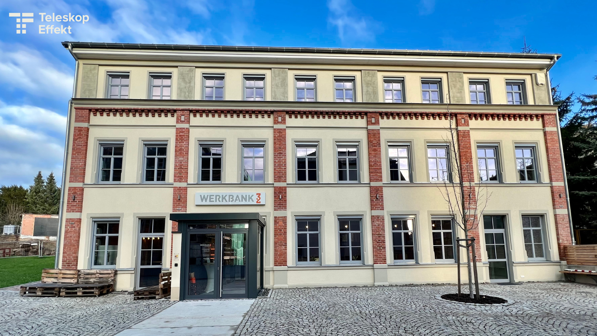 Zumindest in Mittweida ist man jedoch schon einen Schritt weiter. Hier arbeitet seit 2021 das Projekt Werkbank32. Deren Geschichte nahm ihren Anfang durch einen Immobilienkauf der Volksbank Mittweida. Die erwarb ein größeres Areal in Mittweida rund um eine alte Wäscherei, inklusive Altbauvilla und Werkstatt. Ursprünglich sollte das Objekt wieder verkauft werden, doch schließlich entschied sich die Volksbank, es selbst zu sanieren – und als Innovationsquartier zu etablieren. Da sei zunächst vor allem an Coworking-Spaces und Räume für Start-ups gedacht worden, die Corona-Pandemie machte das Konzept aber zumindest teilweise zunichte.